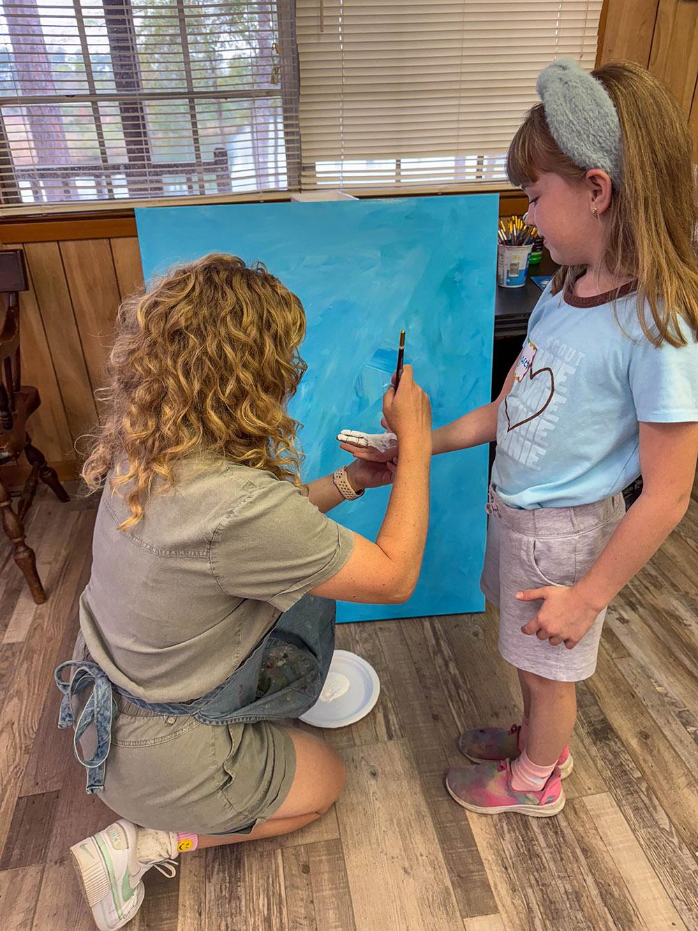 The day was packed with creativity, fun activities, and moments of bonding. One of the highlights of the camp was the guided painting session, where the girls explored their artistic talents. They also worked on a special collaborative piece, which was gifted to the Girl Scouts of South Alabama to hang at their facility, leaving a lasting mark on the organization!