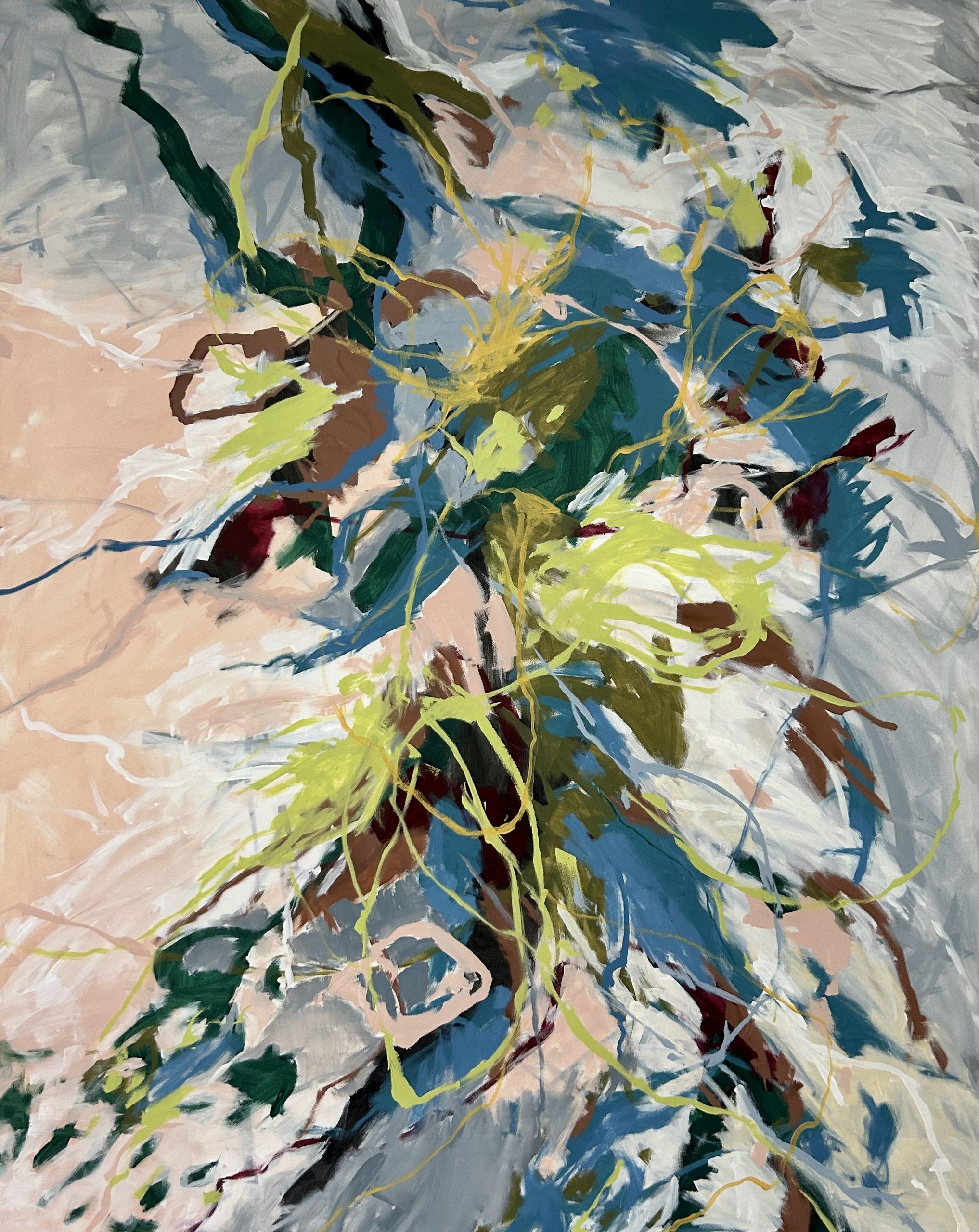 Newman’s paintings feature bold impasto hues united with movements of value creating egresses between realism and abstraction. The spaces between the strokes are the portamento in the compositions connecting all the intervening tones.